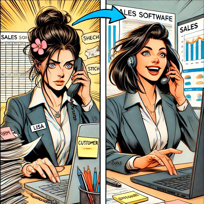 Lisa arbeitet im Vertrieb und verbringt 40 % ihrer Zeit damit, Kundeninformationen und Verkaufschancen in verschiedenen Tools zu suchen oder Daten manuell zu aktualisieren.